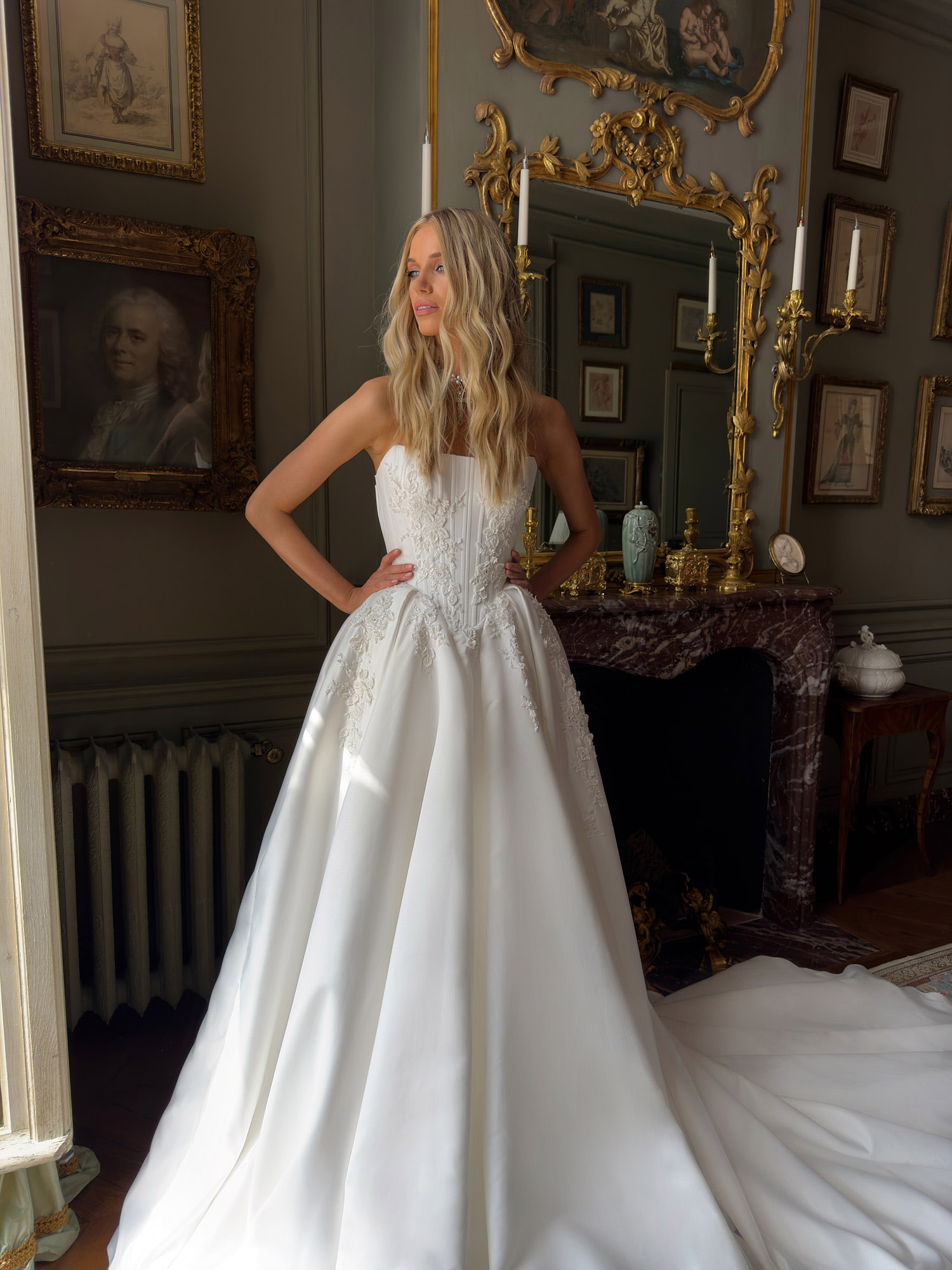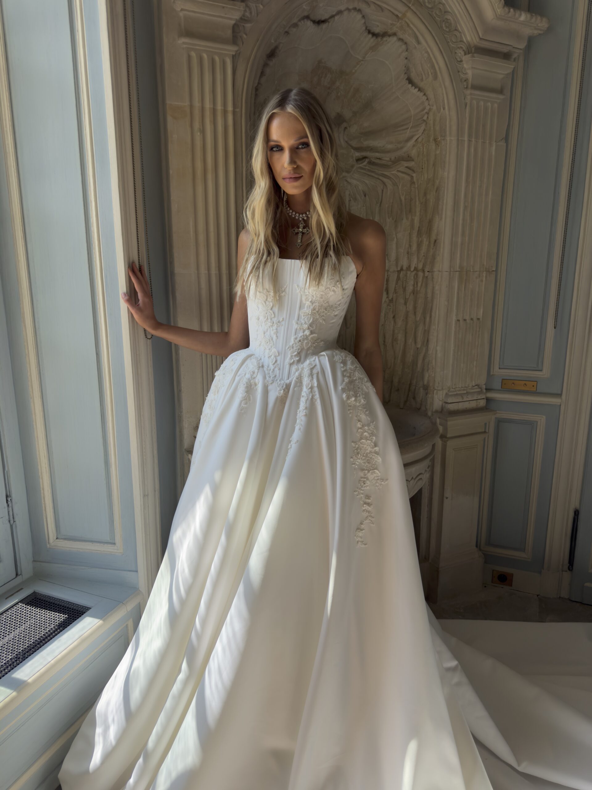 Each Tom Sébastien wedding gown is crafted according to our official size chart. Every piece is made to order and carefully personalized for each client. Thoughtful details, along with the option to add lining to the bodice or skirt if needed, are executed with the expertise of our Fashion House. Please contact your retailer to discuss customization options, order details, and the full creation process of your wedding gown.