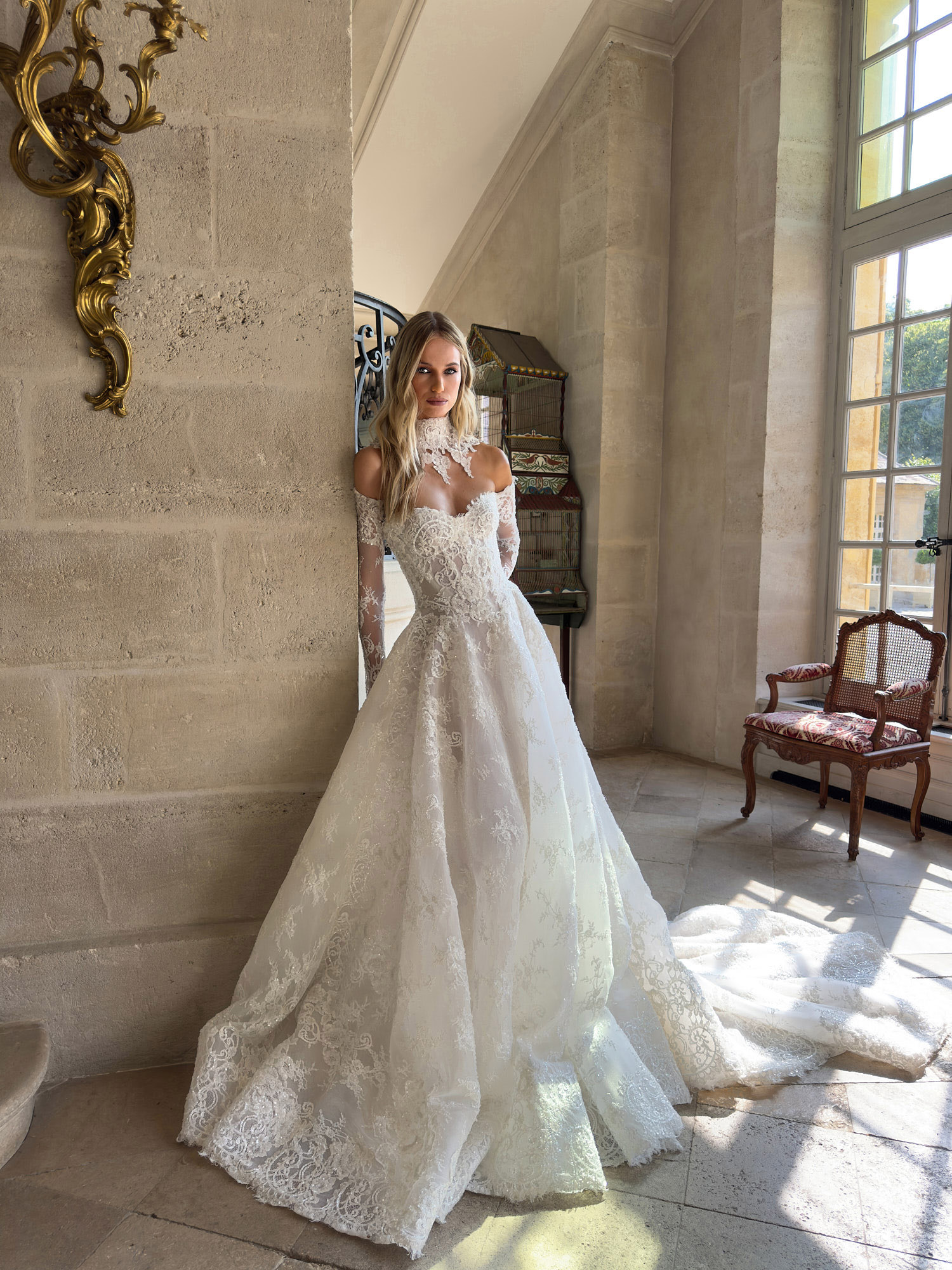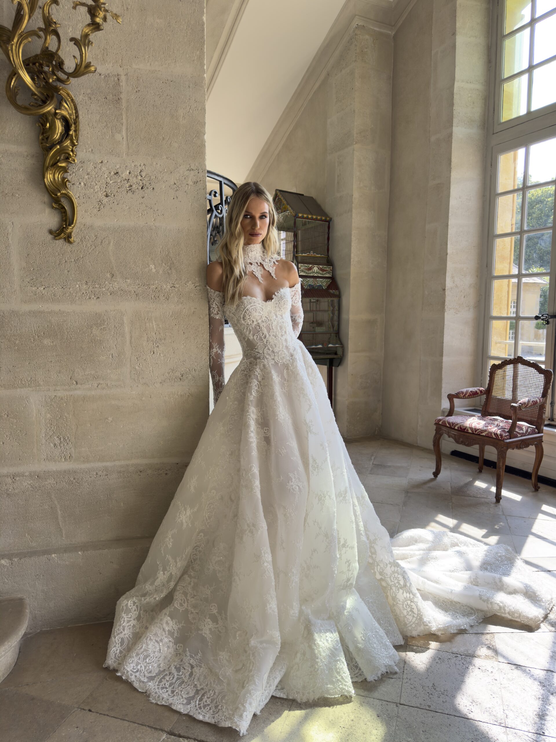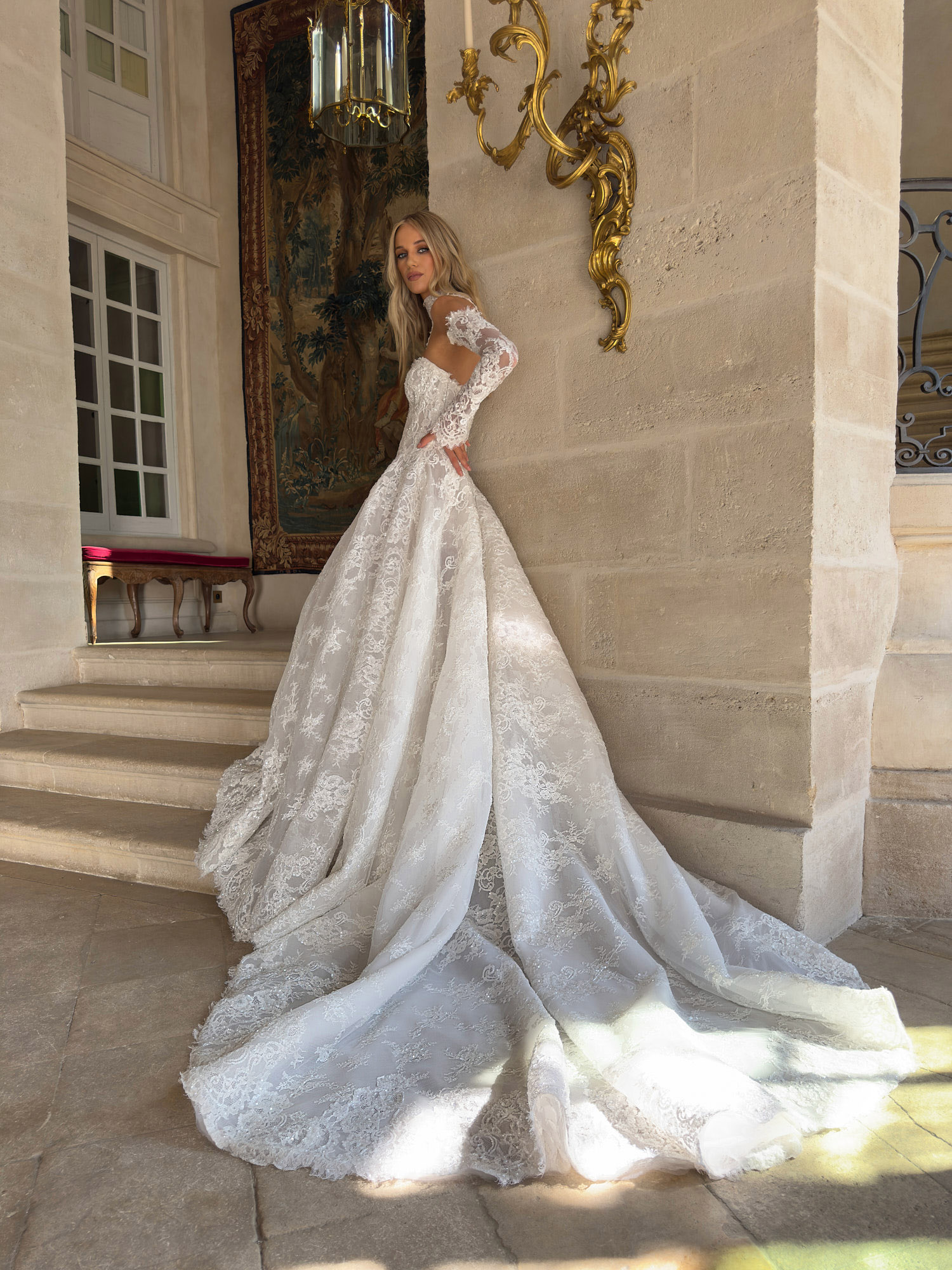 Each Tom Sébastien wedding gown is crafted according to our official size chart. Every piece is made to order and carefully personalized for each client. Thoughtful details, along with the option to add lining to the bodice or skirt if needed, are executed with the expertise of our Fashion House. Please contact your retailer to discuss customization options, order details, and the full creation process of your wedding gown.